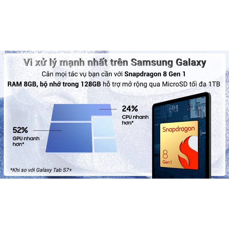 Tab S8 sử dụng CPU Snapdragon 8 Gen1 mới, lại hiệu năng cực kỳ ổn định và vấn đề nhiệt độ đã được giải quyết và được kiểm soát hơn vì kích thước máy tính bảng khá lớn khi so với điện thoại, giúp khả năng tản nhiệt được tốt hơn.