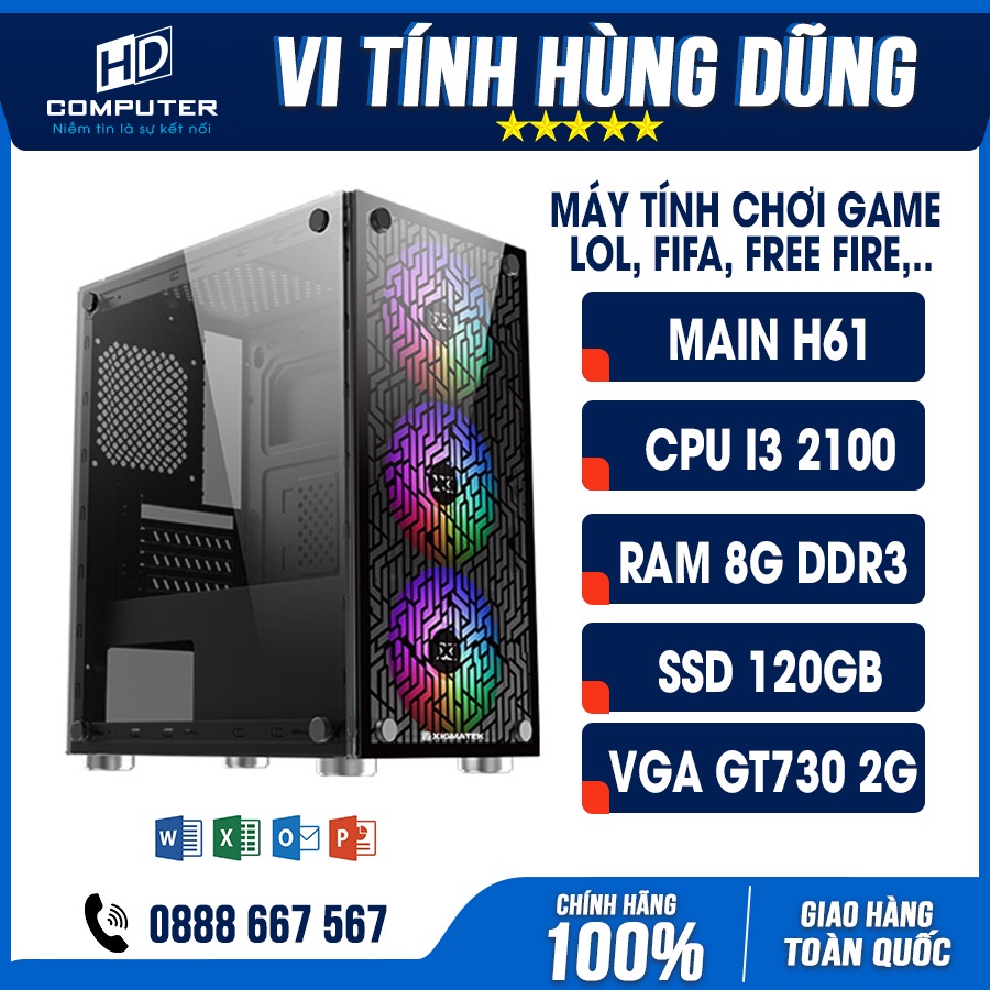 Máy tính & Laptop > Máy Tính Bàn > Bộ Máy Tính Bàn || Máy tính chơi game LOL, FIFA,..., H61, I3 2100, RAM 8G, SSD 120G, VGA GT730Còn hàng
