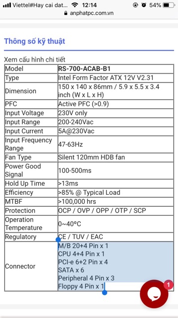 Nguồn máy tính cooler master 700w cống suất thực cân mọi card đồ hoạRS 700 ACAB B1 80plus