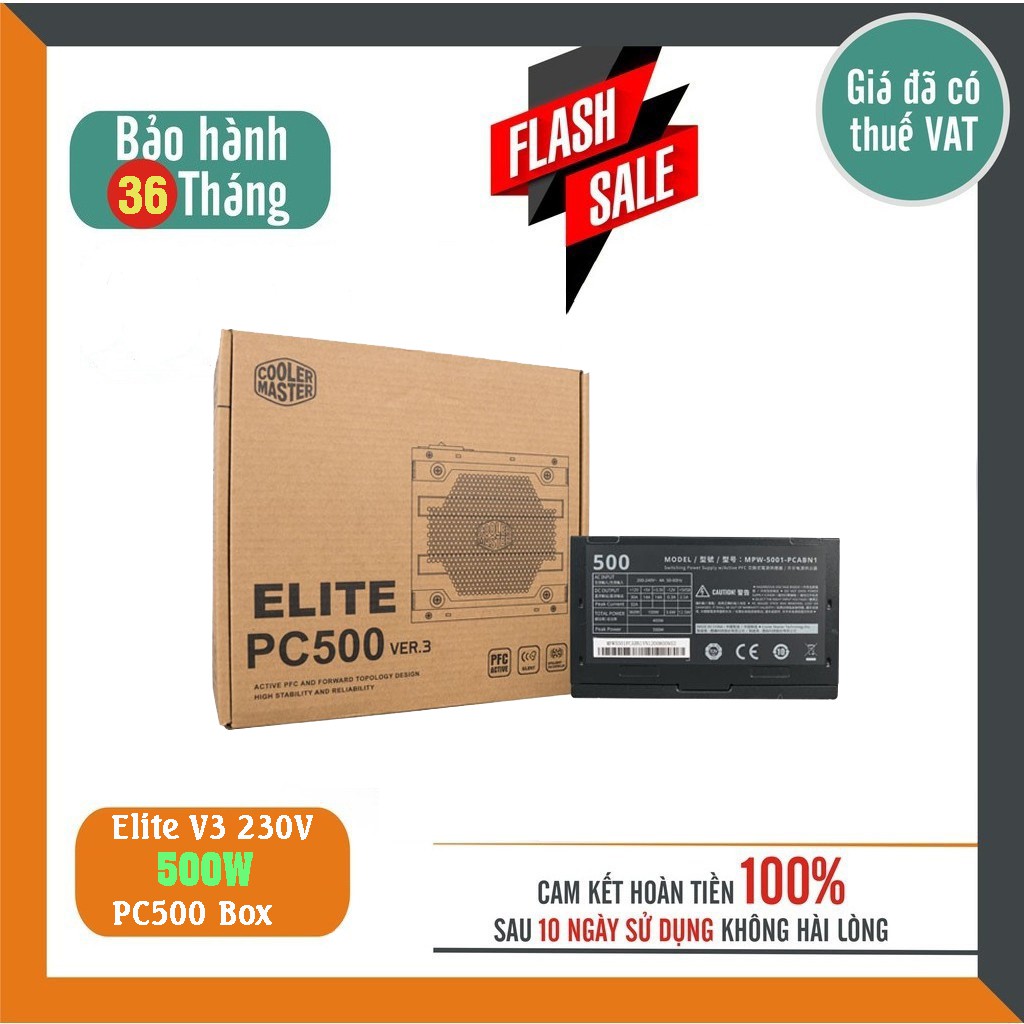 Máy tính & Laptop > Linh Kiện Máy Tính > Nguồn Máy Tính || [Mã 273ELHA100K0 hoàn 7% đơn 500K] Nguồn máy tính Cooler Master Elite V3 230V PC500 500W (Màu Đen)Còn hàng