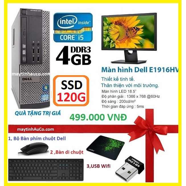 Máy tính & Laptop > Máy Tính Bàn > Bộ Máy Tính Bàn || Máy tính để bàn đồng bộ Dell optiplex 390 ( Core i5 / 4G / SSD 120G ),Màn hình Dell 18.5 inch Wide - LED , Tặng Bàn phímCòn hàng