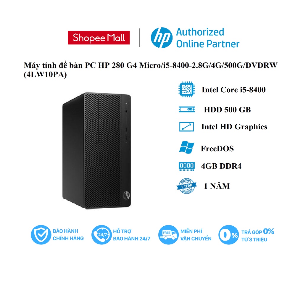 Giới thiệu Máy tính để bàn PC HP 280 G4 Micro | i5-8400 | Ram 4GB | 500GB | DVDRW ( 4LW10PA ).- Hàng chính hãng
