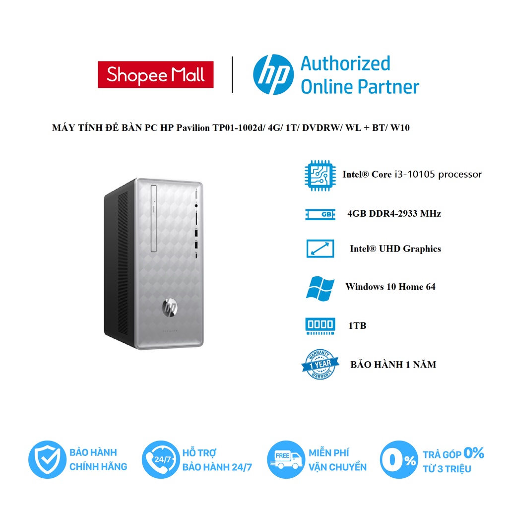 Máy tính & Laptop > Máy Tính Bàn > Bộ Máy Tính Bàn || [Mã ELMALL1TR giảm 5% đơn 3TR] Máy tính để bàn PC HP Pavilion TP01-1002d/ 4G/ 1T/ DVDRW/ WL + BT/ W10 (46J97PA)Còn hàng