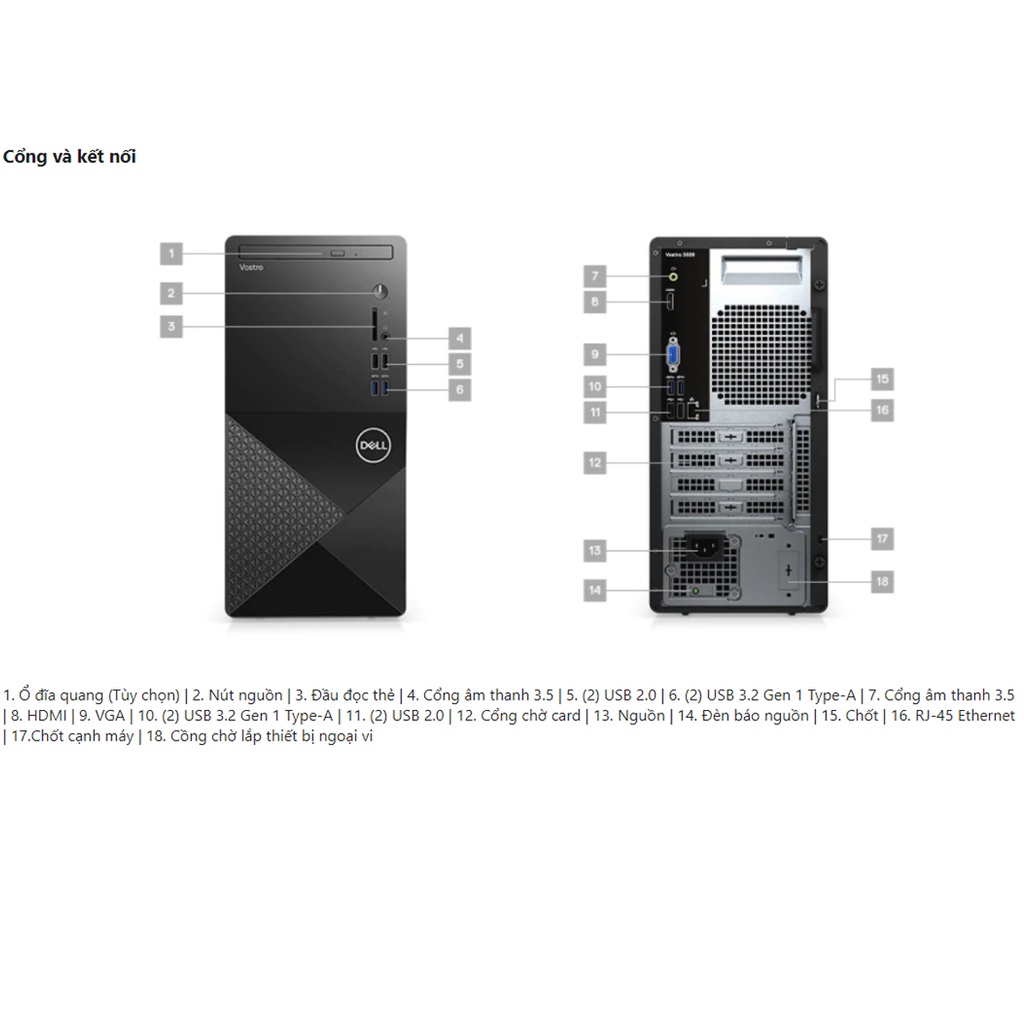 Máy tính & Laptop > Máy Tính Bàn > Bộ Máy Tính Bàn || Máy tính để bàn văn phòng Dell Vostro 3888, i3-10105, 4GB, 1TB, Intel UHD Graphics 630, Win 11 - Bảo hành chính hãngCòn hàng