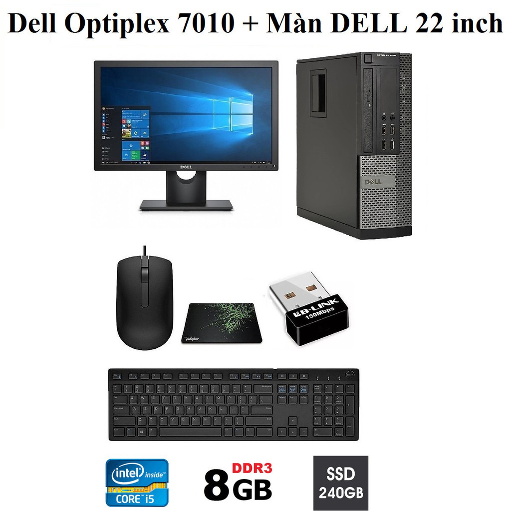 Bộ máy tính dell optiplex intel Core i5 3470, Ram 8GB, SSD 240GB; Màn hình dell 22 inch. Quà Tặng. Hàng Nhập Khẩu.