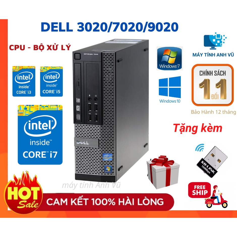 Máy tính đồng bộ Dell Optiplex 3020 7020 9020 nhỏ gọn bền bỉ Tặng USB WIFI Bảo hành 12 tháng