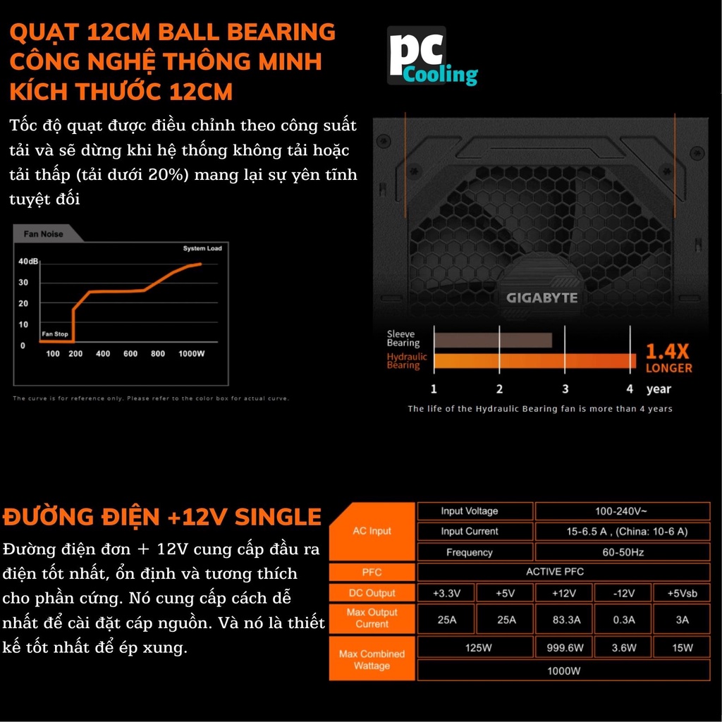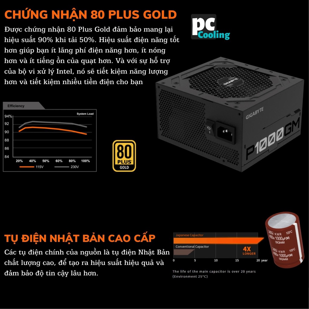 Giới thiệu Nguồn máy tính GIGABYTE GP - P1000GM 1000W 80 PLUS GOLD FULL MODULAR CHÍNH HÃNG