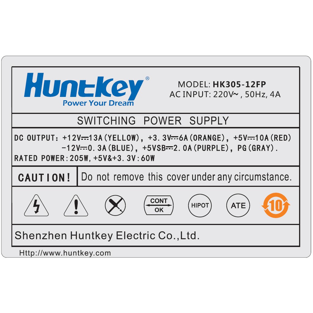 NGUỒN HUNTKEY HK305-12FPTuân thủ theo chuẩn ATX12V V2.3 của Intel