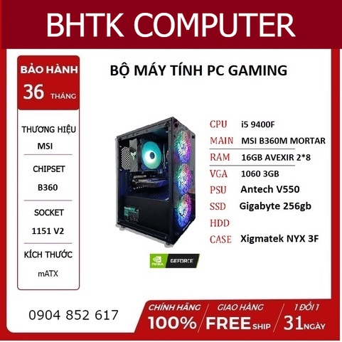 Bộ máy tính PC B360+i5 9400F+1060 3GB Hiệu năng vượt trội gaming đỉnh cao PUBG highSetting BH 36 tháng hầu hết linh kiện