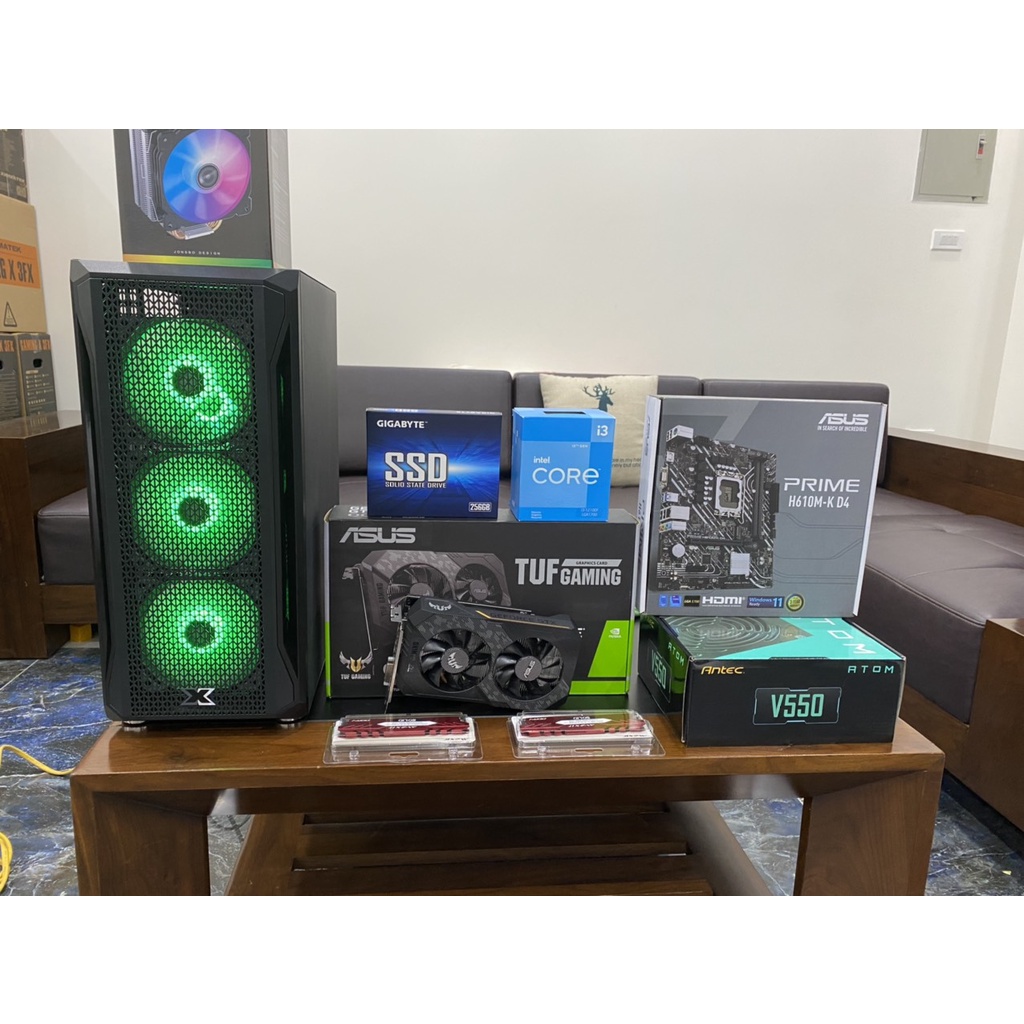 Bộ máy tính PC Gaming H610+i3 12100F+1650 TUF Gaming+ 16gb ram full NEW hiệu năng tuyệt vời bảo hành 36 tháng