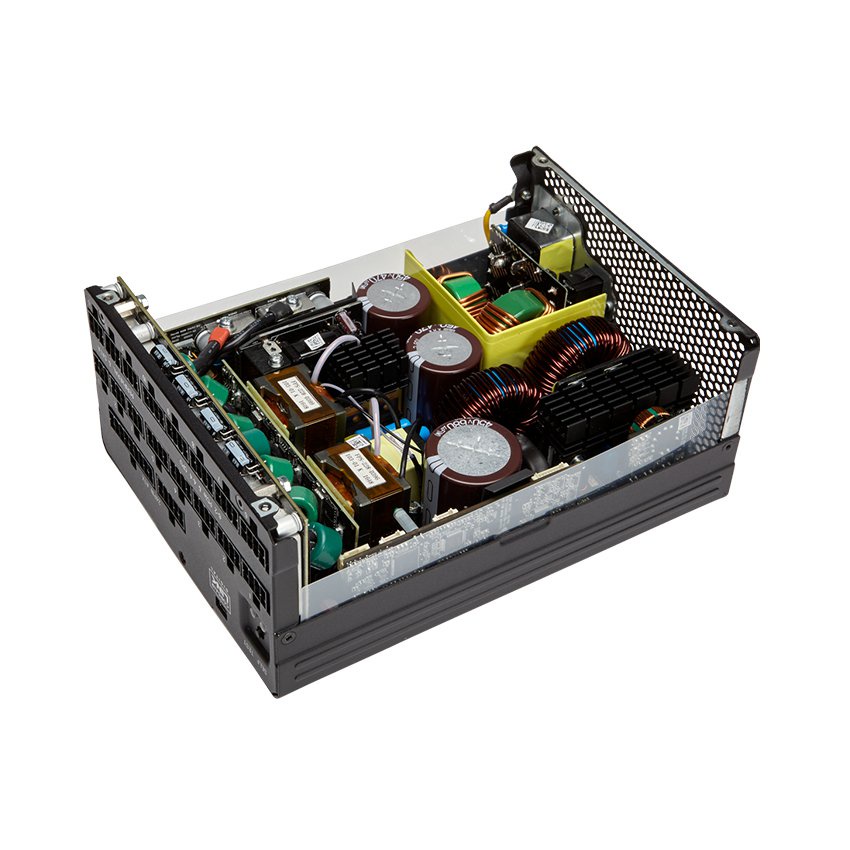 Cung cấp 1600W công suất siêu ổn định, chứng nhận 80 PLUS Titanium100% Tụ điện Nhật Bản 105 ° C , sử dụng các linh kiện cao cấp và thiết kế kỹ thuật số mang lại hiệu quả trên 94%. Tương thích với hoạt động với phần mềm CORSAIR iCUE