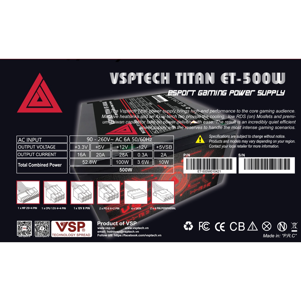 Giới thiệu Nguồn máy tính VSPTECH Titan ET-500W NEW CHÍNH HÃNG