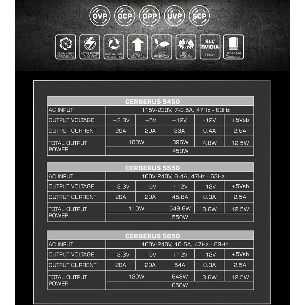 Giới thiệu Nguồn máy tính Xigmatek CERBERUS SE400 S450 S550 S650 - EN41121 EN41138 EN41145 Chính Hãng