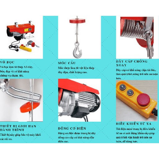* Sử dụng tời tương ứng với 50%-70% tải trọng thiết kế để máy bền.