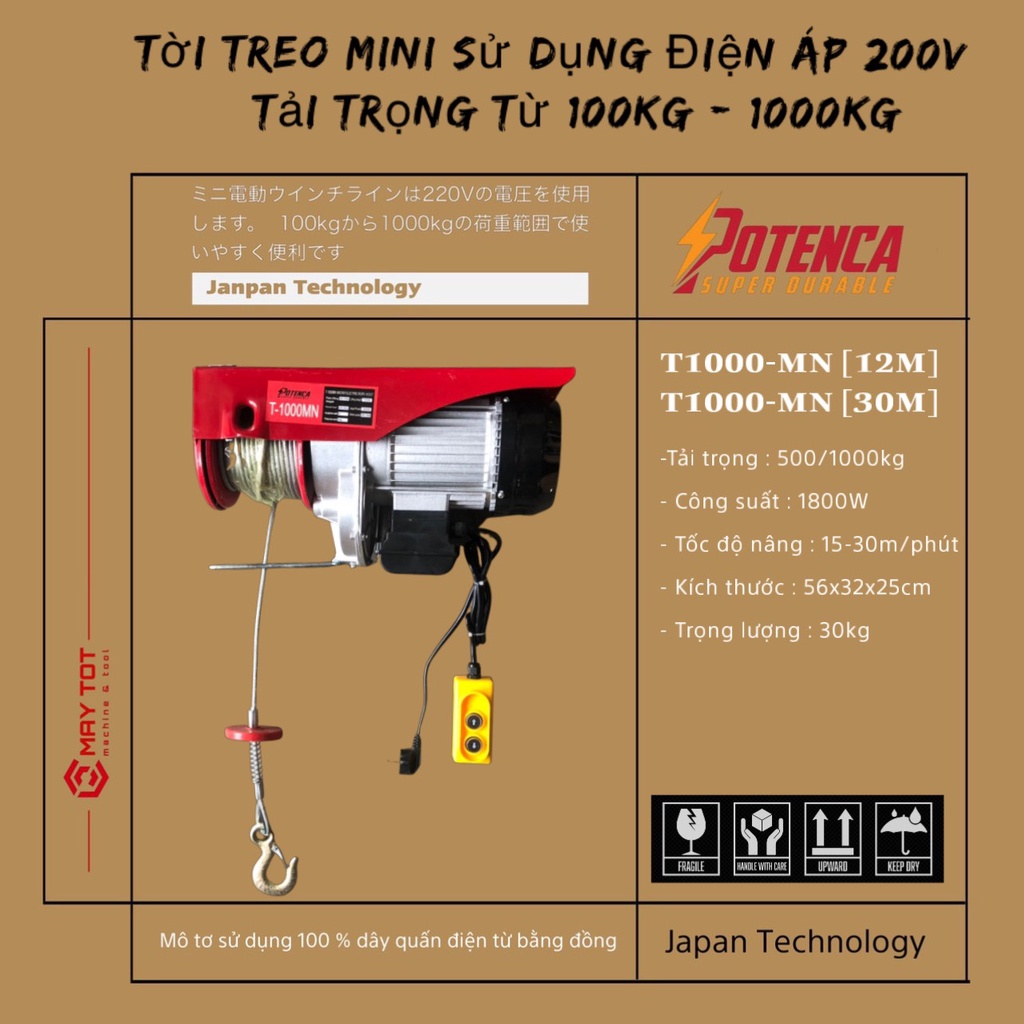 Giới thiệu Máy Tời Điện T1000- MN ( PA 1000 ) loại 12M và 30M ( lõi đồng ) sẵn hàng sll hot hot!!!!