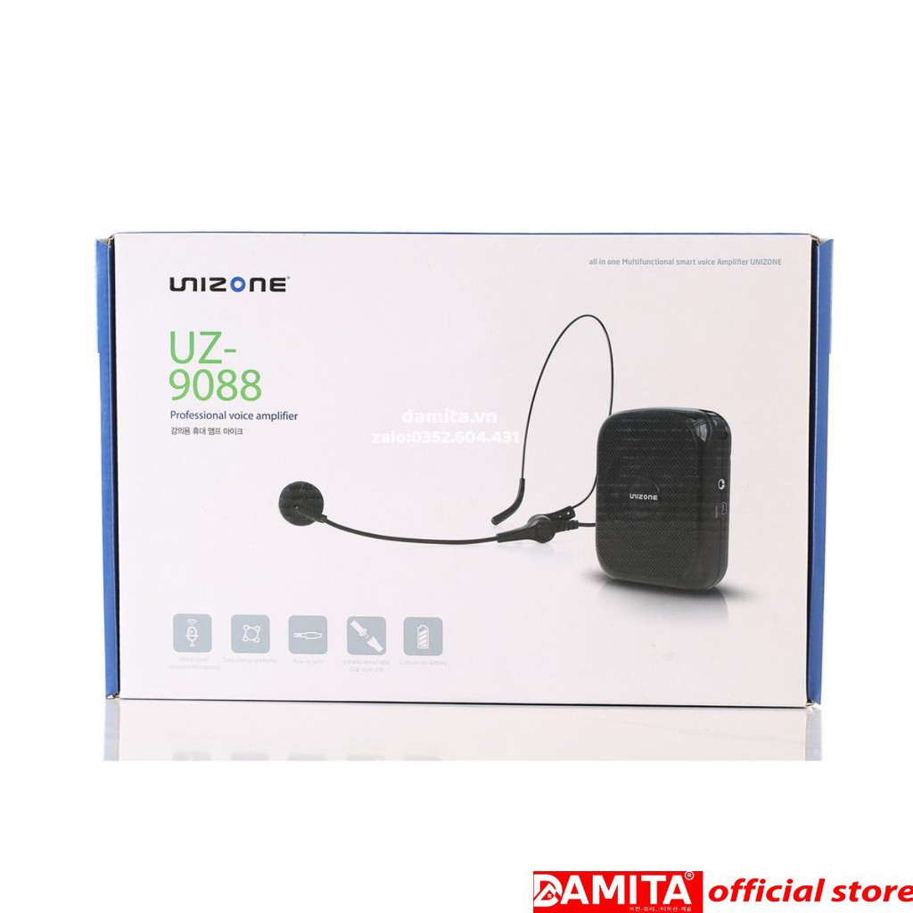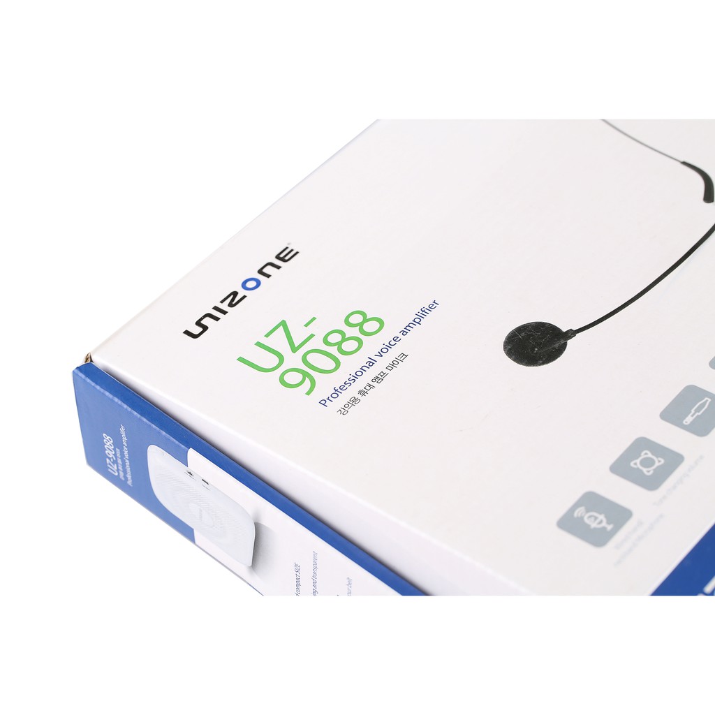 Unizone 9088 sử dụng pin lithium (7.4V 1000Ma), cần dùng cáp, sạc 3 – 4 tiếng để sạc đầy. Thời lượng pin của thiết bị là 8 giờ/lần sử dụng, quá đủ để người dùng thực hiện hoạt động giảng dạy, thuyết trình trong cả ngày làm việc, thời gian chờ là 20 giờ. Thiết bị mang công suất tối đa 20W nhưng âm thanh phát ra vẫn đáp ứng chuẩn hệ thống PA.