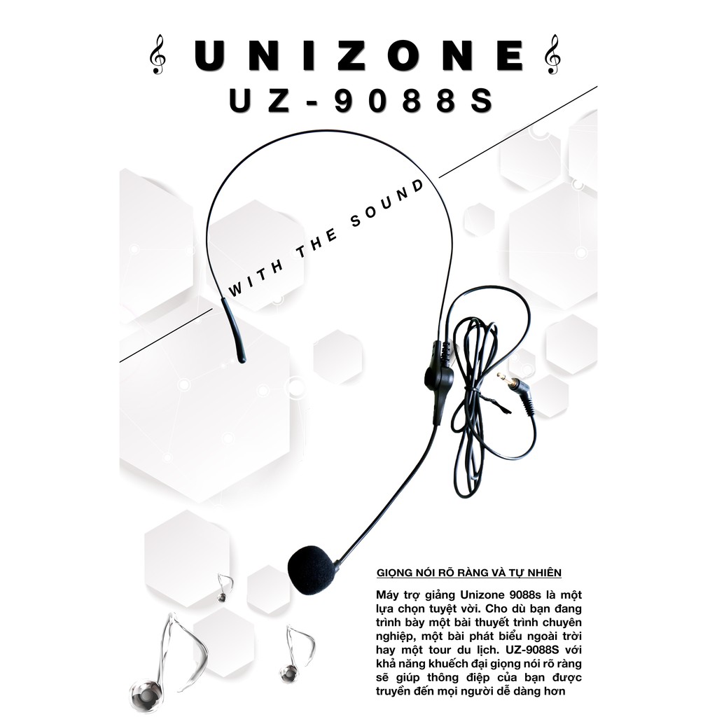 Tổng quan về thiết kế của máy trợ giảng Unizone 9088s:Công suất ra: 5w