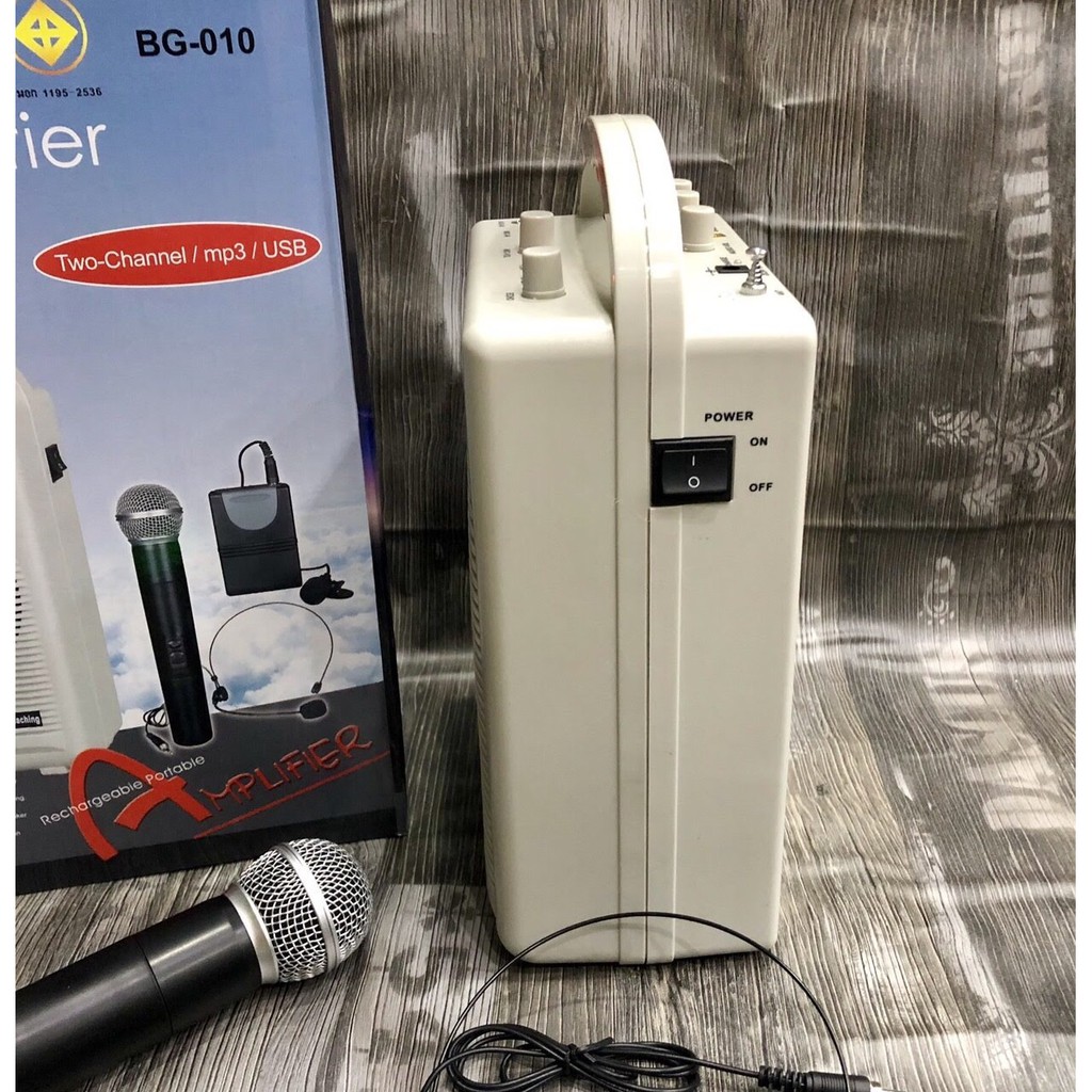 Đặc điểm: Màu Trắng với 3 micro: 1mic cầm tay không dây, 1 mic cài cổ áo và 1mic cài sau đầu, có thể sử dụng để thuyết trình trong khoảng 2 – 4 tiếng mới phải sạc lại bình