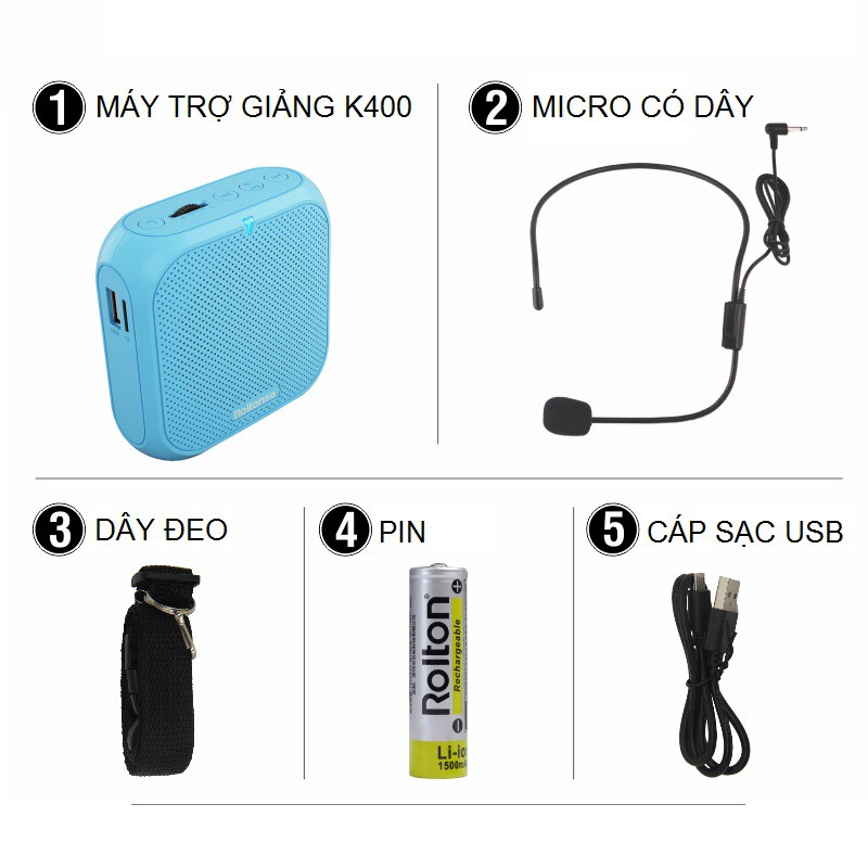 MÁY TRỢ GIẢNG CÓ DÂY ĐA NĂNG 4 TRONG 1 ROLTON K400 - LOA, THIẾT BỊ TRỢ GIẢNG