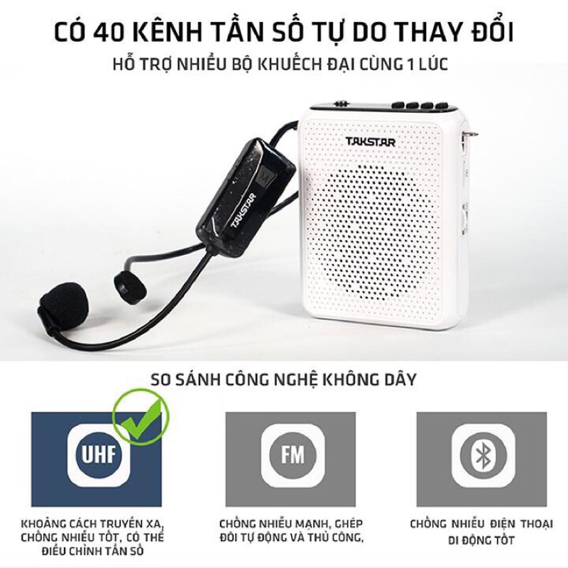 - Máy trợ giảng không dây Takstar E300W kèm 1 Mic không dây thiết kế thời thượng, tinh tế, nhỏ nhẹ trọng lượng chỉ 200g