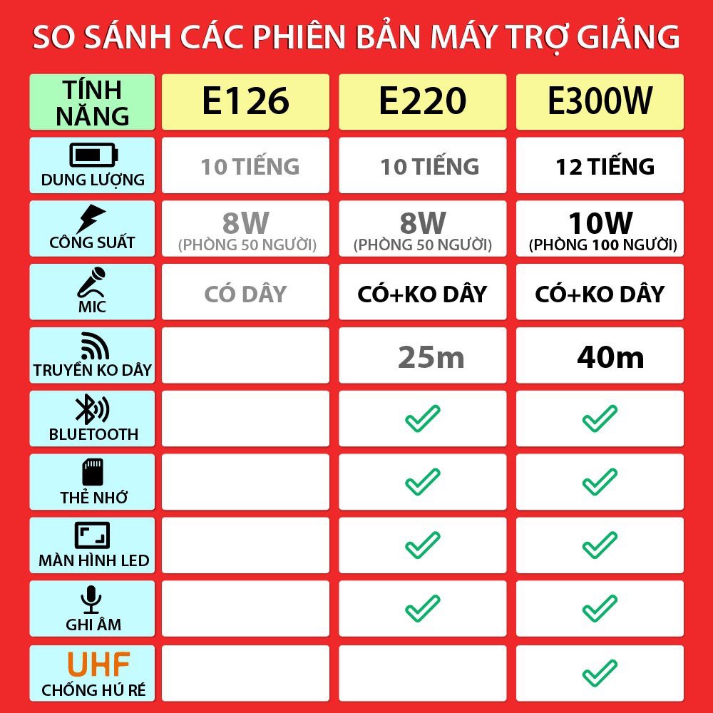 - Máy trợ giảng đa năng tiên tiến ngoài chức năng trợ giảng còn có thêm nhiều tính năng khắc: ghi âm, FM, phát tài liệu, bluetooth, cài thẻ nhớ....