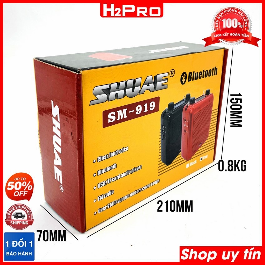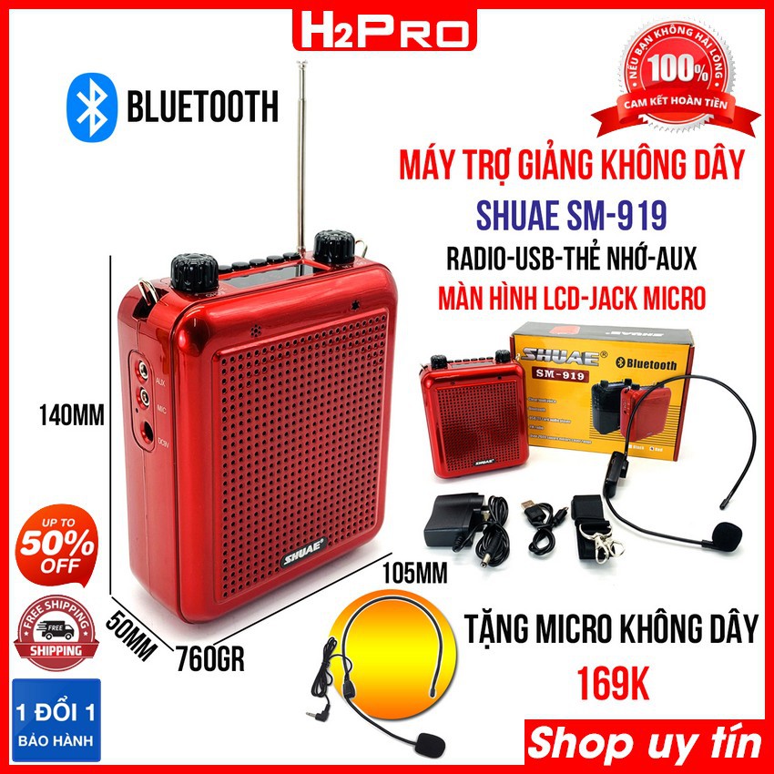 Máy trợ giảng không dây SHUAE SM-919 H2Pro Bluetooth-AUX-USB-Thẻ nhớ, có Radio-nghe nhạc (tặng mic trợ giảng không dây)