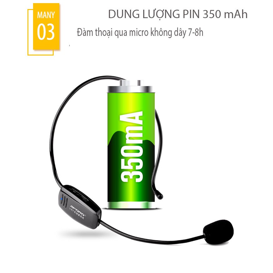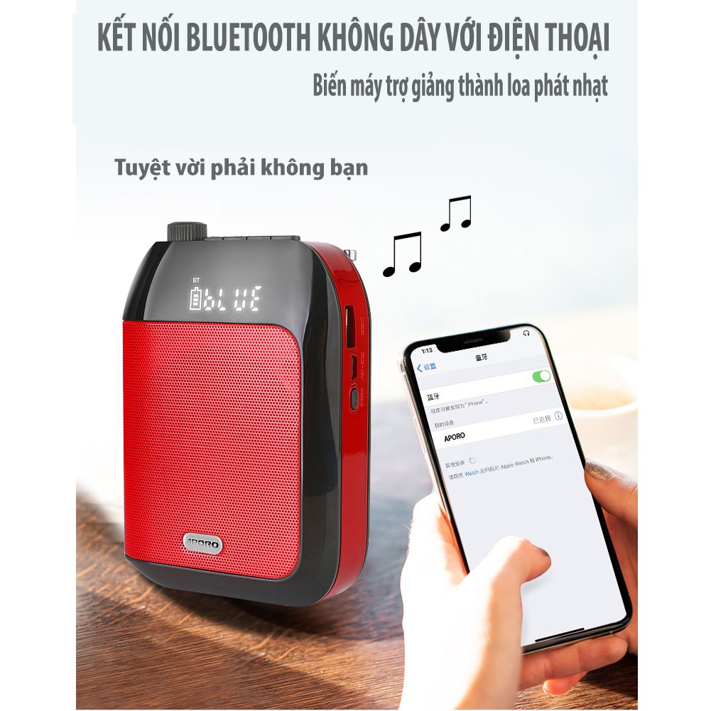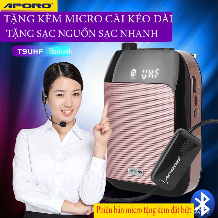 Máy trợ giảng không dây UHF Aporo T9 ( Tặng 1 micro cài ve áo đặc biệt + 01 sạc nguồn )
