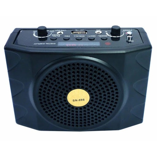 - Máy SN-898 còn tích hợp hát nhạc qua USB, thẻ nhớ MicroSD, FM rất tiện dụng, các ban có thể tải một vài bài beat hay để hát cùng bạn bè, thích hợp với người làm nghề hướng viên dẫn du lịch, giáo viên, giảng viên, bán hàng ngoài trời ,thuyết trình, hội thao v.v.. giúp bạn không cần tốn sức mà giọng vẫn lớn, rõ ràng, dễ nghe.