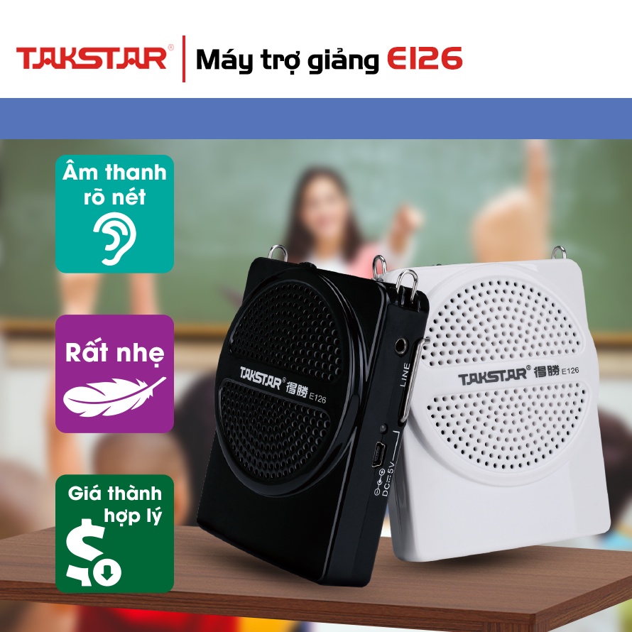 Máy trợ giảng TAKSTAR E126 sử dụng liên tục trong 10h, gọn nhẹ, loa trợ giảng chính hãng [BẢO HÀNH 1 NĂM]