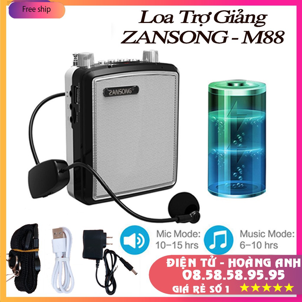 trợ giảng Zansong M88, sản phẩm có chất lượng khá tốt với nhiều tiện ích: trợ giảng - nghe nhạc - nghe radio...Đặc biệt loa sử dụng kết nối wireless với micro không dây và phạm vi kết nối có thể lên đến gần 50 mét, loa còn có thể nghe nhạc qua kết nối bluetooth với các thiết bị như : điện thoại - laptop - máy tính bảng ...