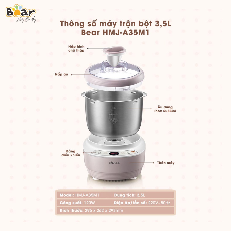 Giới thiệu Máy Trộn Bột 3,5L Bear HMJ-A35M1 - Bản Nội Địa, Inox 304, Ủ Bột, Trộn Nhanh, Công Suất Lớn - Bảo Hành 12 Tháng