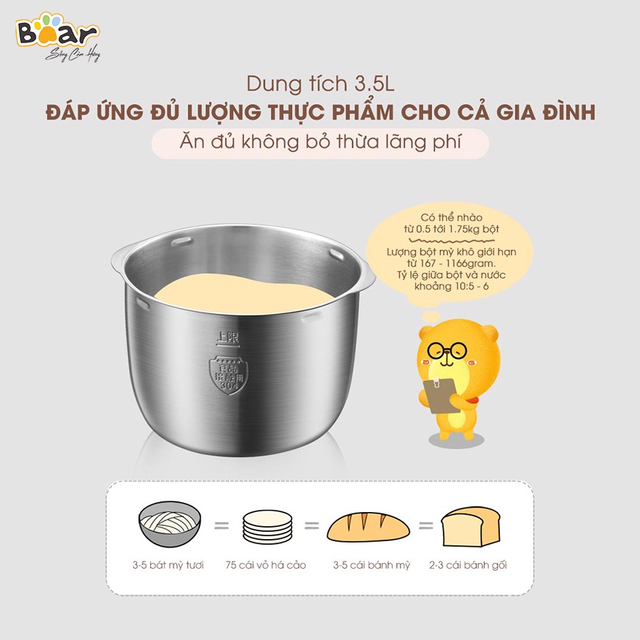 Máy Trộn Bột 3,5L Bear HMJ-A35M1 - Bản Nội Địa, Inox 304, Ủ Bột, Trộn Nhanh, Công Suất Lớn - Bảo Hành 12 Tháng