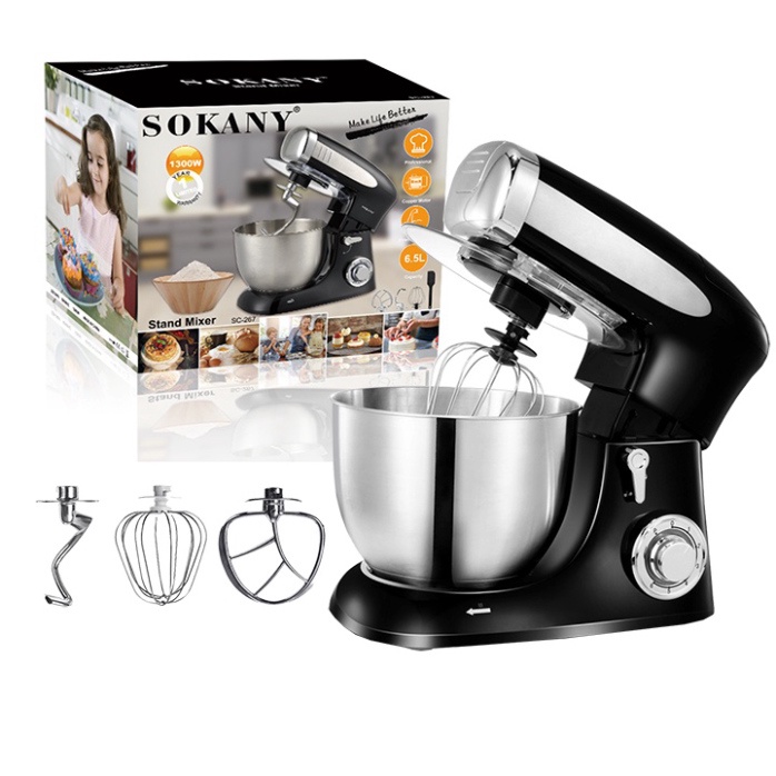Máy nhào bột để bàn SOKANY là 1 sản phẩm cự kì tiện lợi và hữu ích cho tất cả chị em đam mê làm bánh cho gia đình máy có công suất nên đến 1300w, cối trộn 6.5L