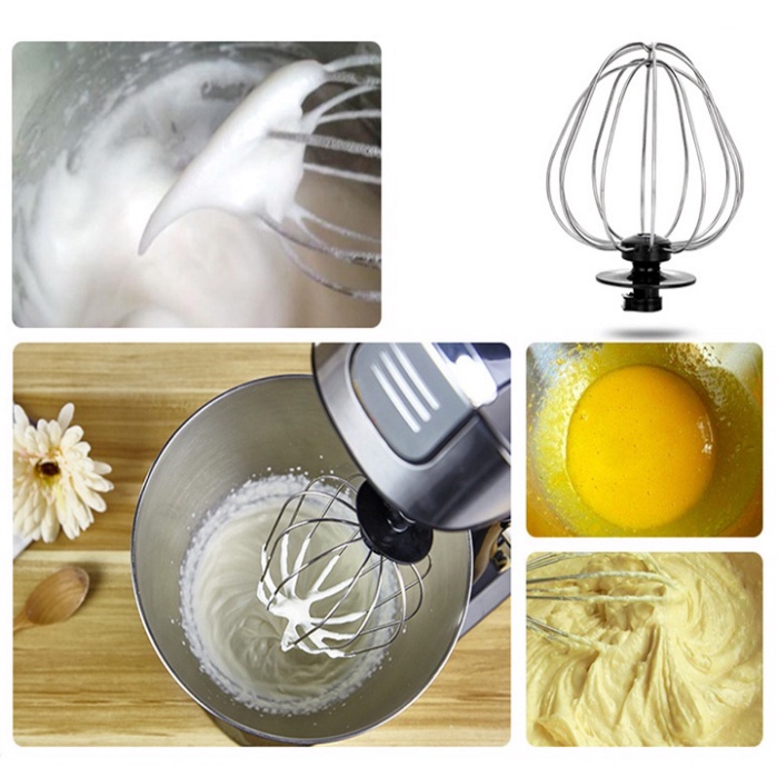+ Phụ kiện đi kèm: Phới lồng, móc nhào, que phẳng, bát trộn, tấm chắn, thìa vét nguyên liệu.
