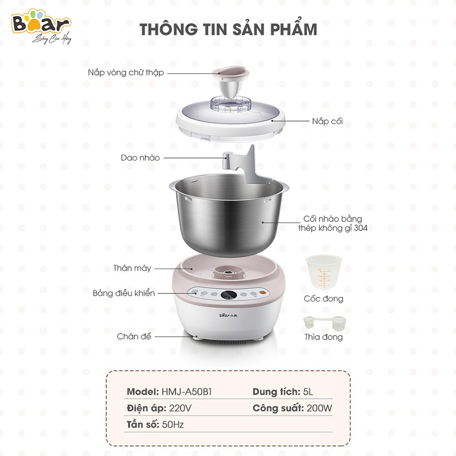 Giới thiệu Máy Trộn Bột Bear 5L Inox 304, Ủ Bột, Nhào Bột, Nhồi Bột Nhanh, Công Suất Lớn Chống Dính - DM-B50V1