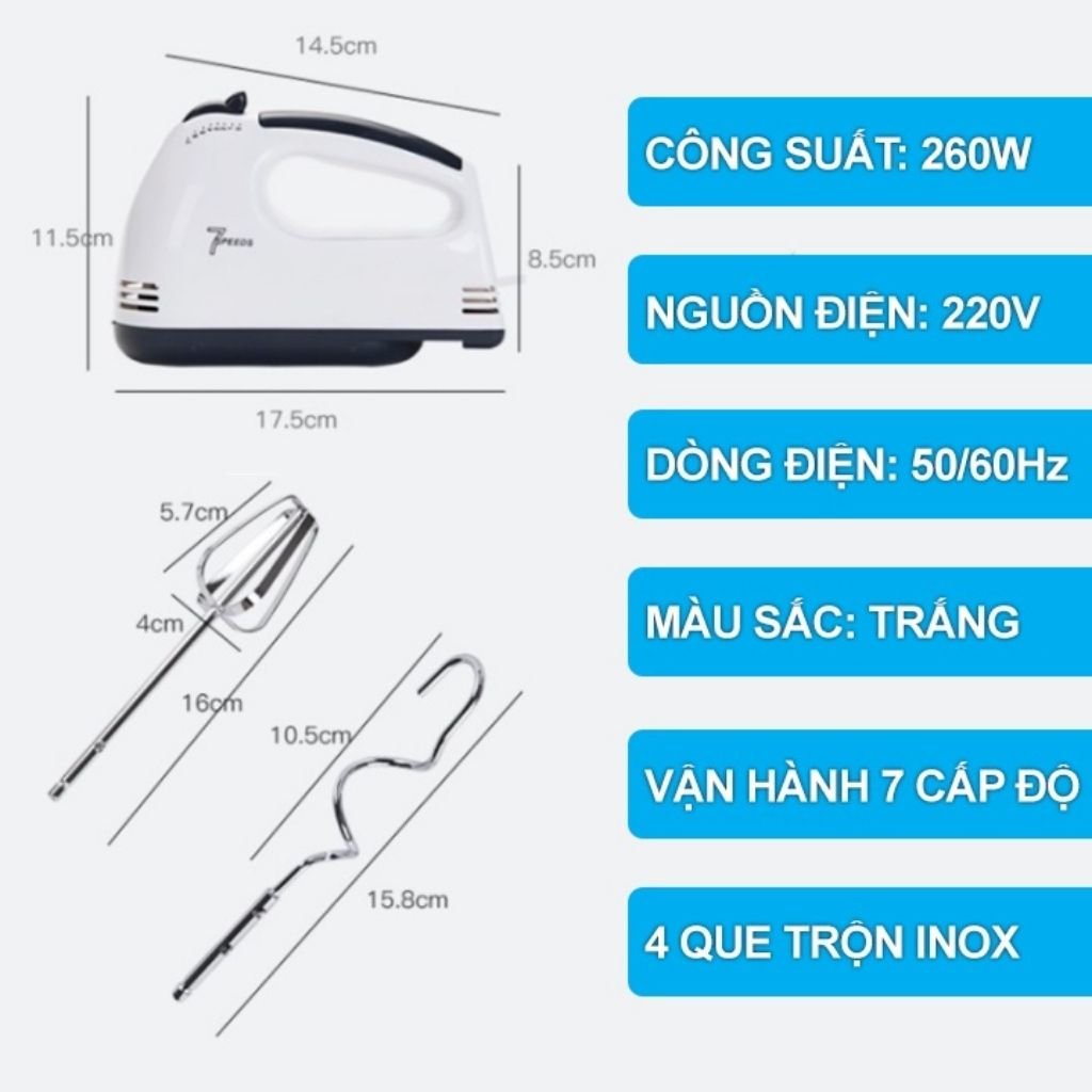 Giới thiệu Máy Trộn Bột Cầm Tay 7 Tốc Độ Công Suất 260W Cực Mạnh, Tiện Lợi Có Thể Đánh Trứng,Kem,Salad, Đánh Bơ,…HÀNG CHÍNH HÃNG