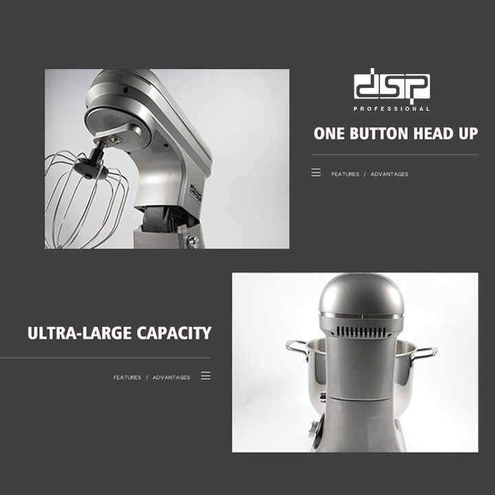 Máy trộn bột, đánh trứng 10 lít cao cấp nhãn hiệu DSP KM3059 có 8 mức độ vận hành - HÀNG CHÍNH HÃNG BẢO HÀNH 12 THÁNGĐối với các cửa hàng bánh, nhà hàng, hay các bếp ăn công nghiệp hoạt động với công suất lớn, sản xuất liên tục và đồi hỏi sự đồng điều trong chất lượng của các món ăn thì việc trộn bột thủ công sẽ không mang lại hiệu quả tối ưu và tốn rất nhiều thời gian, nhân lực. Vì vậy, máy trộn bột chính là sự lựa chọn hoàn hảo trong trường hợp này.