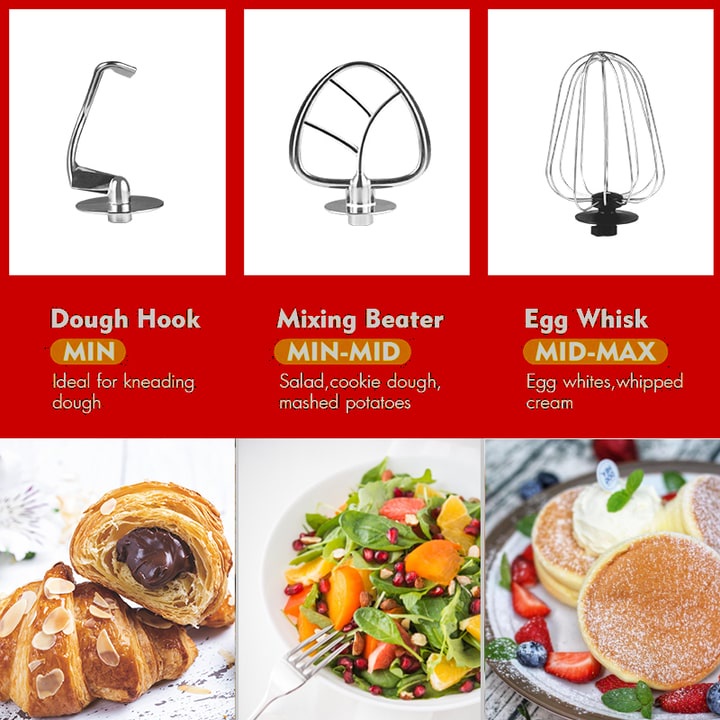 💥 Mức 1-3 Dùng nhào các loại bột nặng như bánh mì,... Nên đánh từ mức thấp nhất rồi chỉnh dần lên mức cao.