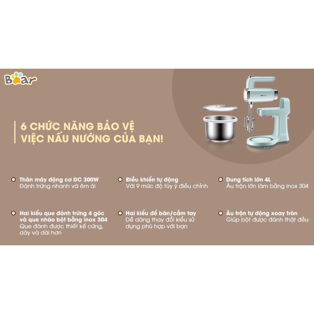Máy Trộn Bột và Đánh Trứng Bear DDQ-B03V1Ưu điểm: