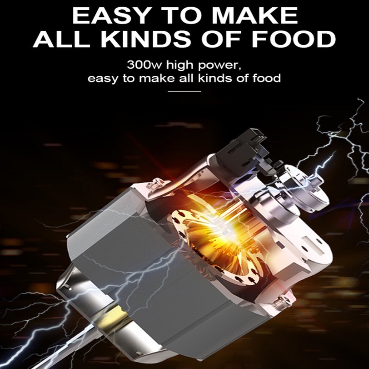 - Đánh trứng, đánh bột, đánh kem, nhào trộn nhanh chóng, tiết kiệm thời gian với công suất mạnh mẽ 300 W