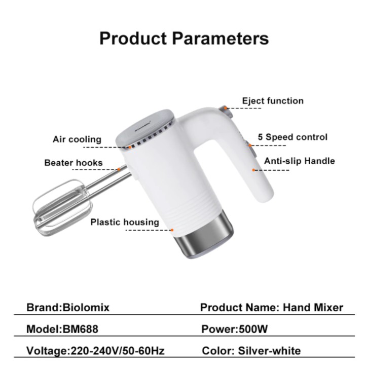 Giới thiệu Máy trộn bột, đánh trứng, tạo bọt 3 trong 1, công suất 500W. Thương hiệu cao cấp Biolomix BM688 - Bảo Hành 1 Năm