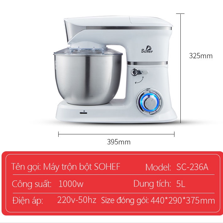 Giới thiệu Máy trộn bột máy đánh trứng cỡ lớn đa năng bát inox 5 lít công suất 1000W máy trộn bột đánh kem làm bánh tiện dụng