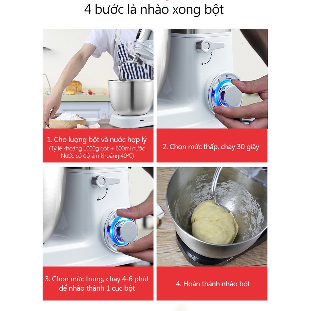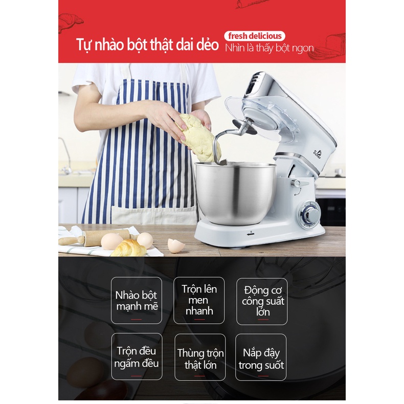 Máy trộn bột máy đánh trứng cỡ lớn đa năng bát inox 5 lít công suất 1000W máy trộn bột đánh kem làm bánh tiện dụng