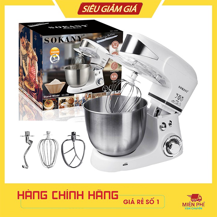 Thiết Bị Điện Gia Dụng > Đồ gia dụng nhà bếp > Máy trộn thực phẩm || Máy trộn bột, nhào bột, đánh kem, đánh trứng để bàn công nghiệp Sokany 1000WCòn hàng