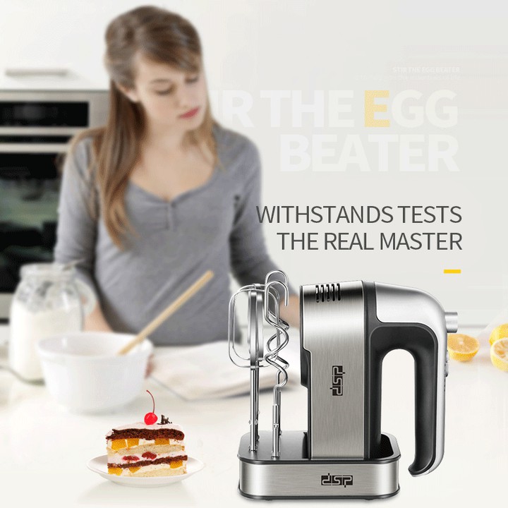 - Máy đánh trứng DSP KM2068 có các chức năng chính là đánh trứng, đánh bột, đánh kem, giúp chị em có thể làm bánh mì, bánh bông lan và nhiều loại bánh khác, làm kem tại nhà dễ dàng.