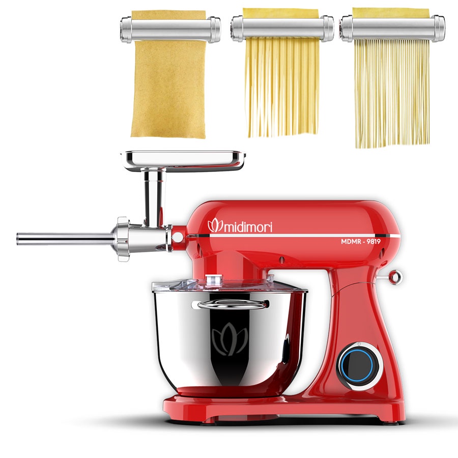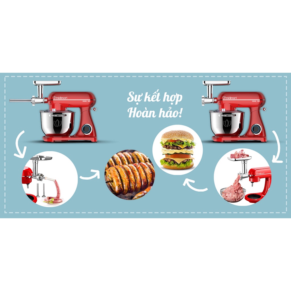 Thiết Bị Điện Gia Dụng > Đồ gia dụng nhà bếp > Máy chế biến thực phẩm & Xay thịt || Máy trộn bột xay thịt, đùn xúc xích, cán bột cắt mỳ thành sợi thân khung thép Midimori, MDMR-9819D (1800W)Còn hàng