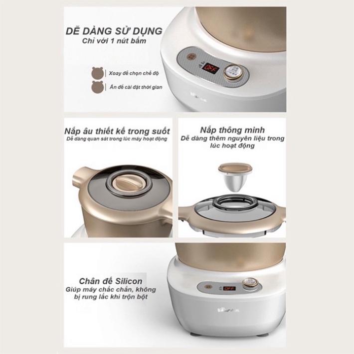 - Thân Máy nhồi và ủ bột, nồi ủ và nhồi bột bear HMJ-A50E2 model mới của hãng máy BEAR chắc chắn, lớp đáy bowl chống rung và 4 chân bọc cao su chắc chắn, chống rung lắc và trơn trượt trong quá trình hoạt động.