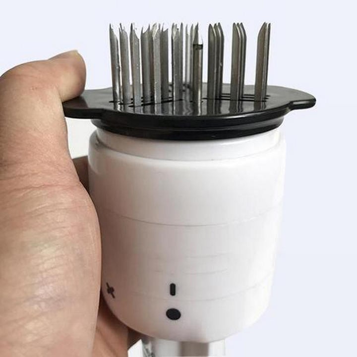 Máy Ướp Làm Mềm Thịt sẽ đảm bảo bạn không bao giờ phải ăn những miếng thịt nướng khô khốc và nhạt nhẽo,. Thiết kế bởi nhiều mũi kim giúp nước sốt đi sâu vào từng thớ thịt cho hương vị tối ưu