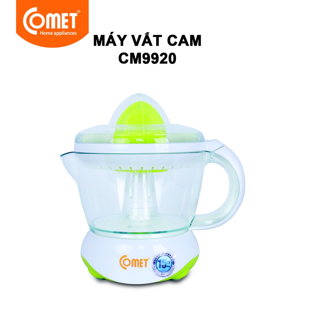 - Máy vắt cam Comet CM9920 thiết kế tiện lợi, dễ sử dụng và nhưng không kém phần sang trọng, được chế tạo bằng loại nhựa AS trong suốt cao cấp an toàn khi tiếp xúc với thực phẩm, giúp bạn dễ dàng quan sát lượng nước trái cây bên trong khi đang vắt hoặc khi sử dụng.