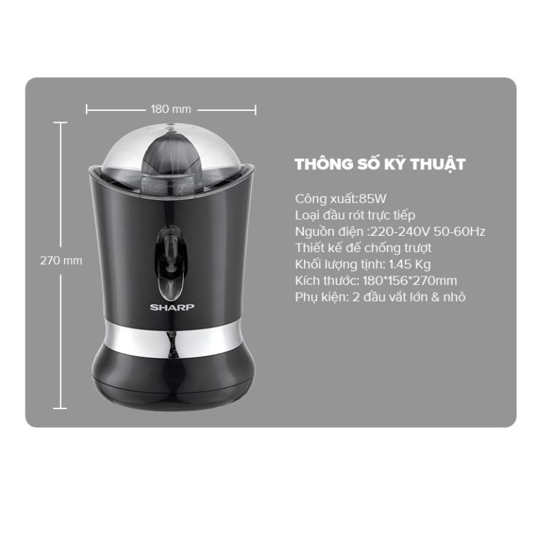 Thông tin sản phẩm:• Máy Vắt Cam Cao Cấp Sharp EJ-J850-BK